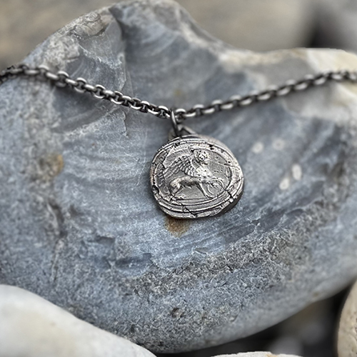 I specialise in wax seal jewellery using an amazing cabinet of seals I inherited from my grandfather, a master engraver. I recreate them in precious metals and they feature countryside animals, mythical creatures, memento mori and mottos. I combine them with hammered silver jewellery, bangles, rings and sand cast signet rings.